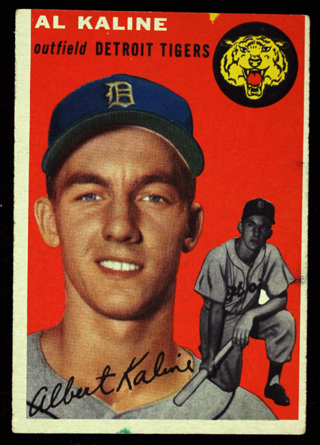 Description:1954 Topps #201 Al Kaline rookie card (VG/EX-EX). Nice example exhibiting light corner wear. Clean front and back with minor print marks at the top and bottom of the front: VG/EX-EX