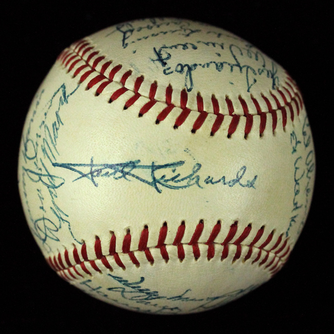Description:1955 Baltimore Orioles team-signed W.Harridge AL baseball (EX/MT). There are (28) signatures on the ball including Paul Richards, Gus Triandos, Willy Miranda, Jim Dyck, Ray Moore, Dave Philley, Harry Brechen, Hank Majeski, Dave Pope, Bob Nelson, Don Johnson, Al Vincent, Cal Abrams, Bob Hale, Lloyd Brown, Chuck Diering, Wayne Causey, Bill Wight, and others. All are signed in blue ink and rate 8 out of 10 on average. Ball exhibits very light toning: EX/MT