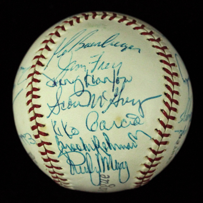 Description:1977 Baltimore Orioles team-signed baseball (EX/MT). Rawlings "Official League" ball signed by (21) including Brooks Robinson, Eddie Murray, Earl Weaver, Cal Ripken Sr., Al Bumbry, Bill Hunter, Mark Belanger, Rudy May, Ken Singleton, Pat Kelly, Billy Smith, Jim Frey, Scott McGregor, Kiko Garcia, and others. All are signed in blue ink and rate 8 out of 10 on average. Ball exhibits minimal wear with a few small toning spots: EX/MT
