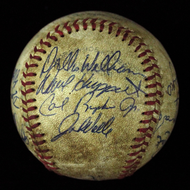 Description:1981 Rochester Red Wings team-signed baseball with Cal Ripken Jr. (used ball, VG). Wilson "Official Approved Major League specifications" ball signed by (17) including Cal Ripken Jr., Dallas Williams, Dave Huppert, John Valle, Tom Eaton, Doc Edwards, and others. All are signed in blue ink and rate 8 to 9 out of 10 on average. The ball appears game-used and exhibits heavy soiling: VG
