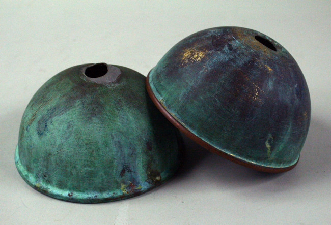 Description:Lot of (2) Baltimore Memorial Stadium copper flag pole tops (VG). A pair of 6" diameter copper flag pole tops from Memorial Stadium. Each measures approx 3" tall and has a hole at the center of the top. Both exhibit some denting and discoloration from being exposed to the elements. Includes a COA from the Maryland Stadium Authority: VG