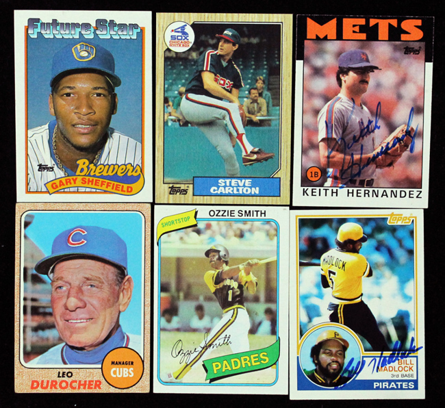 Description:Lot of approx. (550) Baseball cards, including (256) that are signed (GD-NM). Years range from the 1960s to the early 1990s, with most being from the 1980s. Signed cards incl. Lance Parrish, Rick Sutcliffe, Howard Johnson, Darrell Evans, Ken Griffey (Sr), Enos Cabell, Al Oliver, Kent Tekulve, Hubie Brooks, George Foster, Mookie Wilson, Rusty Staub, Jesse Orosco, Keith Hernandez, Steve Rogers, Bill Madlock, Garry Templeton, Dave Dravecky, Graig Nettles, Eric Show, Tim Raines, Fernando Valenzuela, Jerry Reuss, Rick Cerone, Steve Bedrosian, Bob Horner, Lonnie Smith, Bob Welch, Rick Monday, Tom Hume, Larry Andersen, Chili Davis, Ray Knight, Dave Parker, Joe Torre, Larry Bowa, Ron Cey, George Hendrick, Chris Chambliss, Lee Smith, Jack Clark, Buddy Bell, Jay Johnstone, Rick Dempsey, Roger McDowell, Gary Gaetti, Wally Backman, Richie Hebner, Jim Kaat, Willie Davis, Steve Garvey, Chet Lemon, and others. Signatures rate 2 to 10 (avg 8) out of 10. Unsigned cards are mostly from the 1970s through early 1980s, and include a mix of commons and stars, with a few HOFers mixed in. Most appear to grade EX-EX/MT overall. Range: GD-NM