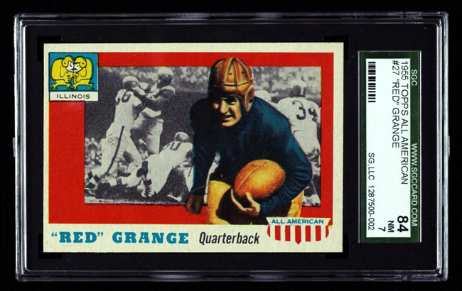 1955 Topps All-American #27 Red Grange (SGC 84 NM). Very nice example featuring sharp corners and clean front and back. Graded SGC 84: NM