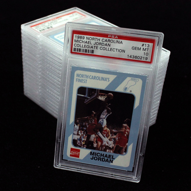 Lot of (21) 1989 and 1990 Michael Jordan North Carolina Collegiate Collection cards (all PSA 10 Gem Mint). Includes: (9) 1989 North Carolina Collegiate Collection card #13; (2) 1989 North Carolina Collegiate Collection card #15; (2) 1989 North Carolina Collegiate Collection card #16; (2) 1989 North Carolina Collegiate Collection card #18; (4) 1989 North Carolina Collegiate Collection card #65; (1) 1990 North Carolina Collegiate Collection card #3; and (1) 1990 North Carolina Collegiate Collection card #44. All are graded PSA 10: Gem Mint