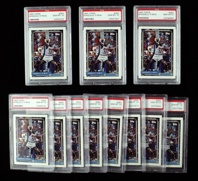 Description:Lot of (20) 1992/93 Topps #362 Shaquille O'Neal rookie cards (all PSA 10 Gem Mint). All are virtually untouched examples featuring perfect centering, sharp corners, and clean fronts and backs. All are graded PSA 10: Gem Mint