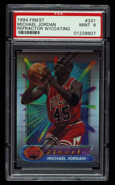 1994/95 Topps Finest #331 Michael Jordan refractor w/coating (PSA 9 MT). Virtually perfect example showing no wear. Graded PSA 9: MT