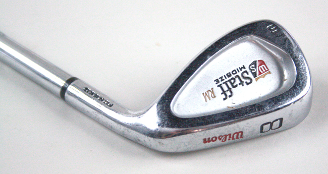 Description:Michael Jordan's personal Wilson Staff Forged 8 iron golf club (EX). Wilson Staff Forged 8 iron, with Wilson Fat Shaft, and Golf Pride Tour Wrap grip. Exhibits moderate usage wear with surface scratches and soil residue on the club head, and tape residue on the shaft. The offered golf club originated from the personal collection of Michael Jordan and includes COA from Upper Deck Authenticated: EX