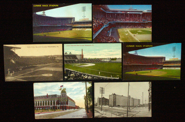 Description:Lot of (7) vintage Shibe Park / Connie Mack Stadium postcards, c.1910-1960s (VG-EX/MT). Includes 1910 stamped postcard depicting Shibe Park (VG, writing on back); 1910 postcard depicting Shibe Park (EX); c.1910s postcard depicting an exterior image of the very edge of Shibe Park (EX); c.1910s postcard depicting "Interior Shibe Park Ball Grounds" (EX); c.1960s Connie Mack Stadium postcard by K.F. Lutz (EX); and (2) c.1960s Connie Mack Stadium postcards by WYCO (EX-EX/MT). Range: VG-EX/MT