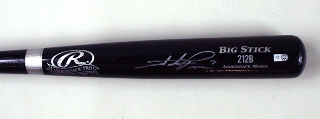 Description:Hunter Pence signed Rawlings baseball bat, MLB Authenticated (NM). 34" Rawlings Adirondack Pro Big Stick 212B model bat signed by Pence in silver marker. Signature rates 8/9 out of 10. MLB Authenticated serial #ed hologram sticker is affixed: NM