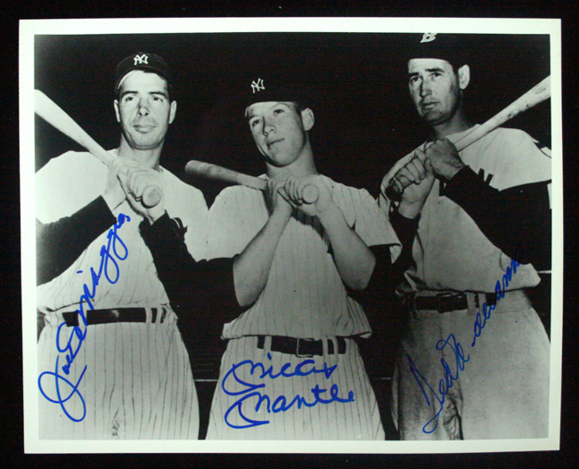 Description:Mickey Mantle, Joe DiMaggio, & Ted Williams multi-signed 8"x10" b&w photo (NM). All three signed the photo in blue marker. Signatures rate 9 to 10 out of 10: NM