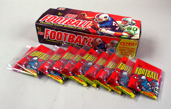 Description:Lot of (10) 1975 Topps Football unopened wax packs with display box (EX-NM). All (10) wax packs remain fully sealed and exhibit minimal to no handling wear. The display box exhibits some handling wear, but displays well overall. Display box: EX, Packs: NM