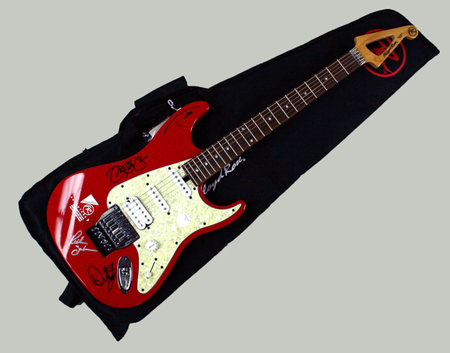 Description:Bon Jovi band signed electric guitar (EX/MT-NM). Floyd Rose Discovery Series electric guitar signed by the members of Bon Jovi including Bon Jovi, Richie Sambora, David Bryan, and Tico Torres. All are signed in marker and rate 9 to 10 out of 10. The guitar exhibits minimal handling wear: EX/MT-NM