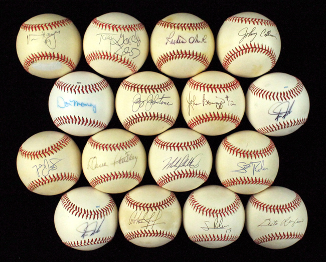 Description:Lot of (16) Philadelphia Phillies single-signed baseballs (EX-NM). All signed on official NL baseballs, unless noted otherwise. Includes Ruben Amaro (Sr), John Briggs ("blem" whited out on side panel), Johnny Callison, (2) Darren Daulton (both Eastern League balls), Tony Gonzalez ("blem" erased on side panel), Von Hayes ("blem" whited out on side panel), Jay Johnstone, Sixto Lezcano, Mike Lieberthal, Don Money (Rawlings Official League ball), Dave Philley, Cookie Rojas, and (3) Scott Rolen. Signatures rate 7 to 10 (avg 8) out of 10. Most show various degrees of toning: EX-NM