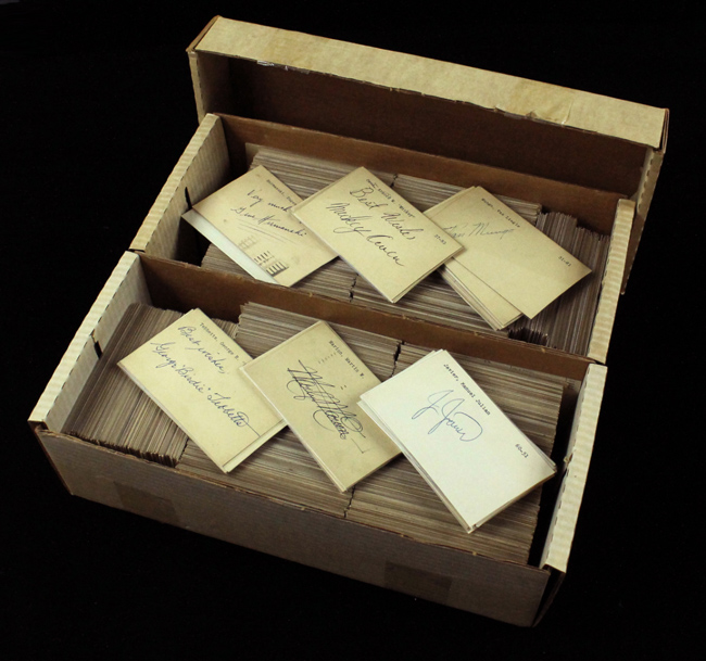 Description:Collection of (1,293) baseball player signed Government Postcards c.1947 to 1967 (EX-NM/MT). A large assortment of signed GPCs containing mostly deceased players and little to no duplication. Some of the highlights include - Bill White, Julian Javier, Ron Santo, Marcelino Lopez, Bill Skowron, Andy Carey, Dick Groat, Al Dark, Bobby Brown, Del Crandall, Bob Cain, Jerry Coleman, Andy Pafko, Allie Reynolds, Eddie Collins Jr., Walker Cooper, Marty Marion, Glenn "Red" McQuillen, Preacher Roe, Billy Cox, George McQuinn, Bill Nicholson, George "Birdie" Tebbetts, Jimmy Bloodworth, George Case, Spud Chandler, Tom Henrich, Ken Keltner, Mickey Owen, Bill McGee, Terry Moore, Skeeter Newsome, Wally Berger, Van Mungo, Hal Schumacher, Don Heffner, Babe Dahlgren, Wes Westrum, George Shuba, Charlie Silvera, Bill Rigney, Monte Weaver, Bucky Walters, Jimmie Deshong, Rip Sewell, Dutch Leonard, Cecil Travis, Dick Sisler, Cal Abrams, Gene Hermanski, Hubert Bates, Johnny Hopp, Bob Kennedy, Jack Kramer, Eddie Lake, Wes Livingood, Phil Masi, Walter Masterson, Merrill May, Barney McCosky, Dee Phillips, Mel Queen, Marv Rickert, Harv Riebe, Eddie Robinson, John Sain, Bob Savage, Thurman Tucker, Al Unser, Bill Voiselle, Hank Wyse, and others. Most are signed in ink with a small amount in pencil. Signatures rate 9 out of 10 on average: EX-NM/MT