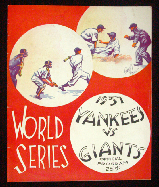 Description:1937 World Series Game 1 program, New York Giants at New York Yankees (EX). Original program from Game 1 of the 1937 World Series played at Yankee Stadium in which the Yankees defeated the Giants 8-1 behind a complete game from Lefty Gomez. Tony Lazzeri hit a HR for the Yankees. Exhibits light overall age and handling wear, and is scored in pencil: EX
