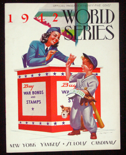 Description:1942 World Series program, St. Louis Cardinals at New York Yankees (EX/MT). Original program issued for 1942 World Series game between the Cardinals vs Yankees played at Yankee Stadium. Unscored, and shows light overall handling wear: EX/MT