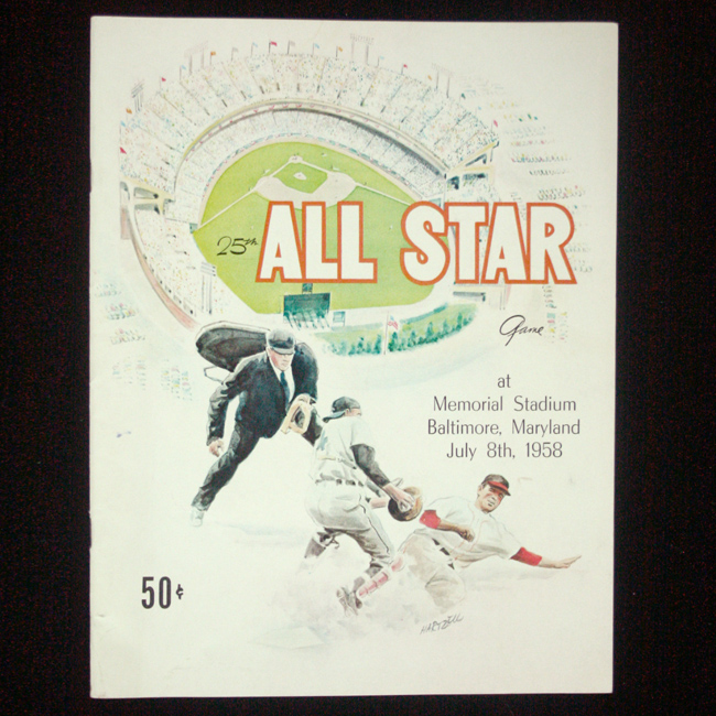 Description:1958 All-Star Game program (EX/MT-NM). Original program from the 1958 All-Star Game which was played at Memorial Stadium in Baltimore. Exhibits minor exterior handling wear. Unscored, with clean interior: EX/MT-NM