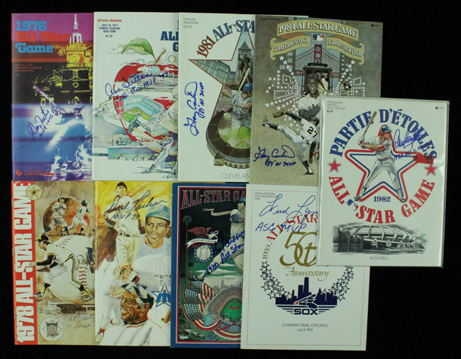 Description:Lot of (9) signed and inscribed All-Star Game programs from 1976-1984 (EX/MT-NM). Incl. 1976 program signed by George Foster with "MVP 1976 AS" inscription; 1977 program signed by Don Sutton with "All-Star MVP '77" inscription (Tri-Star); 1978 program signed by Steve Garvey with "78 All-Star MVP" inscription; 1979 program signed by Dave Parker with "MVP 79" inscription; 1980 program signed by Ken Griffey with "1980 All Star MVP" inscription; 1981 program signed by Gary Carter with "81 AS MVP" inscription (Gary Carter Authenticated); 1982 program signed by Dave Concepcion with "1982 All S. MVP" inscription; 1983 program signed by Fred Lynn with "ASG MVP '83" inscription; and 1984 program signed by Gary Carter with "84 AS MVP" inscription (Gary Carter Authenticated). Signatures rate 8/9 to 10 out of 10: EX/MT-NM