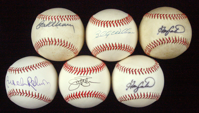Description:Lot of (6) HOFers single-signed baseballs (VG-NM). Incl. Official Florida State League ball signed by Gary Carter (VG, usage wear); C.Flood Senior Professional Baseball Association ball signed by Gary Carter; G.Budig AL ball signed by Jim Palmer; B.Selig ML ball signed by Brooks Robinson; W.White NL ball signed by Billy Williams; and Official Florida State League ball signed by Earl Weaver (VG, usage wear). Signatures rate 7/8 to 9/10 out of 10: VG-NM