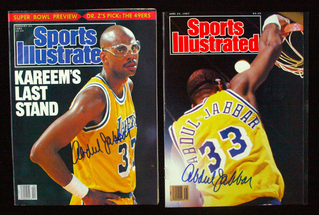 Description:Lot of (2) Kareem Abdul-Jabbar signed issues of Sports Illustrated from 1987 and 1989 (EX/MT-NM). Incl. June 22nd 1987 Sports Illustrated signed by Abdul Jabbar in blue marker; and Jan 23rd 1989 Sports Illustrated signed by Abdul Jabbar in blue marker. Signatures rate 9 to 10 out of 10: EX/MT-NM