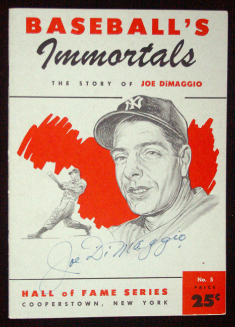 Description:Joe DiMaggio signed 1961 "The Story of Joe DiMaggio" book (NM). Softcover book from the "Baseball's Immortals" series. DiMaggio signed the cover in blue marker. Signature rates 8 out of 10: NM