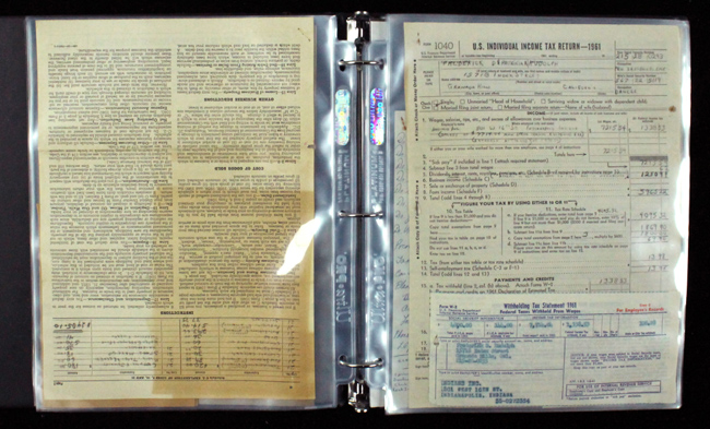 Description:Don Rudolph lot including various paperwork relating to income and expenses (VG/EX-NM). Frederick Donald Rudolph was a pitcher from 1957-1964, and was killed in a truck accident at age 37 in 1968. This lot contains various paperwork relating to Rudolph (mostly carbon copies) including tax statement from The Cincinnati Baseball Club, tax statement from the American League Baseball Club of Chicago, tax statement from the Cleveland Indians Baseball Co, tax statement from the San Diego Baseball Co, tax statement from the Buffalo Bison Baseball Club, other tax return forms, medical expense sheets, and various other paperwork. Most pieces appear to grade EX-EX/MT with typical handling wear: VG/EX-NM