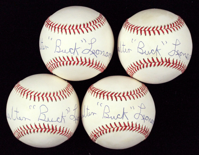 Description:Lot of (4) Walter "Buck" Leonard single-signed W.White baseballs (EX-NM). Leonard signed the sweet spot of each ball in blue ink. Signatures rate 8/9 to 9/10 out of 10. Three exhibit areas of light to moderate toning: EX-NM