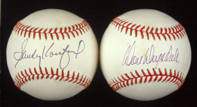 Description:Don Drysdale and Sandy Koufax single-signed baseballs (EX-EX/MT). Incl. W.White NL ball signed by Don Drysdale; and W.White NL ball signed by Sandy Koufax. Signatures rate 8/9 to 9 out of 10. Both show areas of light to moderate toning: EX-EX/MT