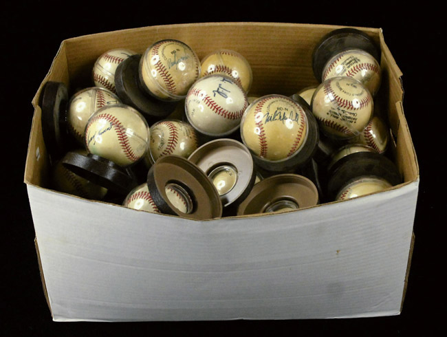 Description:Lot of (49) single-signed baseballs, including (3) Dan Quisenberry (GD-EX/MT). All signed on official NL or AL balls. Includes (3) Dan Quisenberry, (2) Steve Garvey, (2) Tim Raines, (2) Willie Hernandez, Aurelio Lopez, (3) Fernando Valenzuela, Rick Sutcliffe, Hideo Nomo, Orel Hershiser, Julio Franco, Jose Canseco, Terry Kennedy, Keith Hernandez, (2) Tim Wallach, Dale Murphy, Bill Madlock, Rick Monday, (2) Willie Wilson, Joe Niekro, Pedro Guerrero, Bill Russell, (2) Kirk Gibson, (2) Juan Samuel, Tony Pena, Dave Concepcion, Doug DeCinces, Jerry Mumphrey, Mike Marshall, (3) Steve Balboni, (2) Frank White, Tony Bernazard, Junior Noboa, Jorge Orta, and (2) Mariano Duncan. Signatures rate 5/6 to 10 (avg 7/8) out of 10. Most show various degrees of usage wear and/or toning: GD-EX/MT
