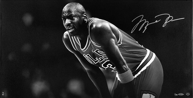 Description:Michael Jordan signed limited edition large format black and white canvas photograph 35x18, UDA (NM/MT). Oversized black and white stretched canvas display measuring 35"x18". Guaranteed authentic Jordan signature stands out impressively in silver, over a dark background area. Edition size limited to just 50. Comes with COA from UDA (serial #ed hologram sticker is affixed). Please note that the item will be shipped directly from Upper Deck, not from our location here at Hunt Auctions, and the photo is a stock image: NM/MT