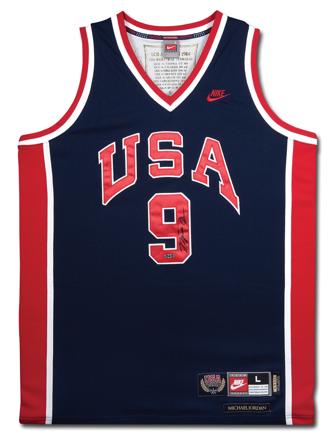 Description:Michael Jordan signed special edition 1984 USA basketball jersey, UDA (NM/MT). High-quality Nike jersey highlighting Michael Jordan's first gold-medal-winning experience. Guaranteed authentic Jordan signature appears on the eye-catching jersey front. Special edition jersey style as worn by Jordan at the 1984 Olympics. Comes with COA from UDA (serial #ed hologram sticker is affixed). Please note that the item will be shipped directly from Upper Deck, not from our location here at Hunt Auctions, and the photo is a stock image: NM/MT