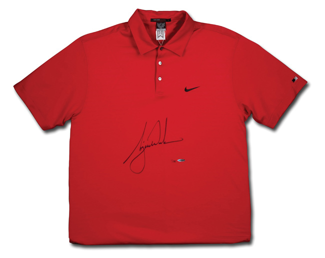 Description:Tiger Woods signed limited edition Sunday Red Nike polo shirt, UDA (NM/MT). If you follow golf, then you know Tiger Woods always wears a red polo on Sunday. This same-style Nike polo that Woods wears out on the PGA Tour can be yours, complete with his authentic autograph signed in black across the front of the polo. Limited to 100. Upper Deck Authenticated guarantees the authenticity of his signature on this polo through its patented five-step authentication process. Comes with COA from UDA (serial #ed hologram sticker is affixed). Please note that the item will be shipped directly from Upper Deck, not from our location here at Hunt Auctions, and the photo is a stock image: NM/MT