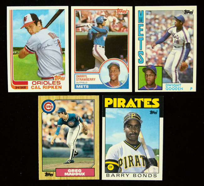 Description:Lot of (6) Topps Traded sets from 1982-1987 (NM overall). Incl. 1982 Topps Traded set with #98 Cal Ripken (NM); 1983 Topps Traded set with #108 Strawberry (NM-NM/MT); 1984 Topps Traded set with #42 Gooden (NM); 1985 Topps Traded set (NM overall); 1986 Topps Traded set with #11 Barry Bonds (NM); 1987 Topps Traded set with #70 Greg Maddux (NM-NM/MT). Also includes 1983 Topps All-Star set. Sets appear to grade NM overall. Cards range: VG-NM/MT