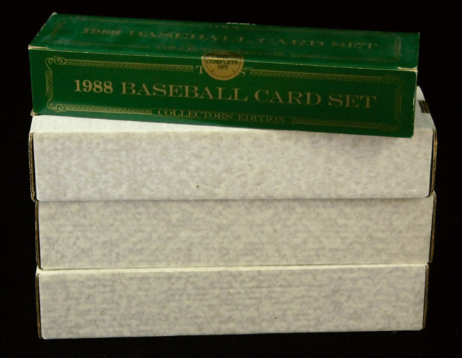 Description:Lot of (4) Topps Tiffany factory sets from 1988-1991 (NM-MT). Incl. 1988 Topps Tiffany factory set still sealed; 1989 Topps Tiffany factory set still sealed; 1990 Topps Tiffany factory set in original box, but bottom of seal has become unstuck from box; and 1991 Topps Tiffany factory set still sealed: NM-MT