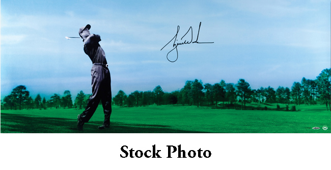 Description:Tiger Woods signed "Sweet Swing" panoramic photograph, UDA (NM/MT). Measures 44" wide by 18" tall, guaranteed authentic autograph by virtue of Upper Deck Authenticated's patented five-step authentication process. Comes with COA from UDA (serial #ed hologram sticker is affixed). Please note that the item will be shipped directly from Upper Deck, not from our location here at Hunt Auctions, and the photo is a stock image: NM/MT