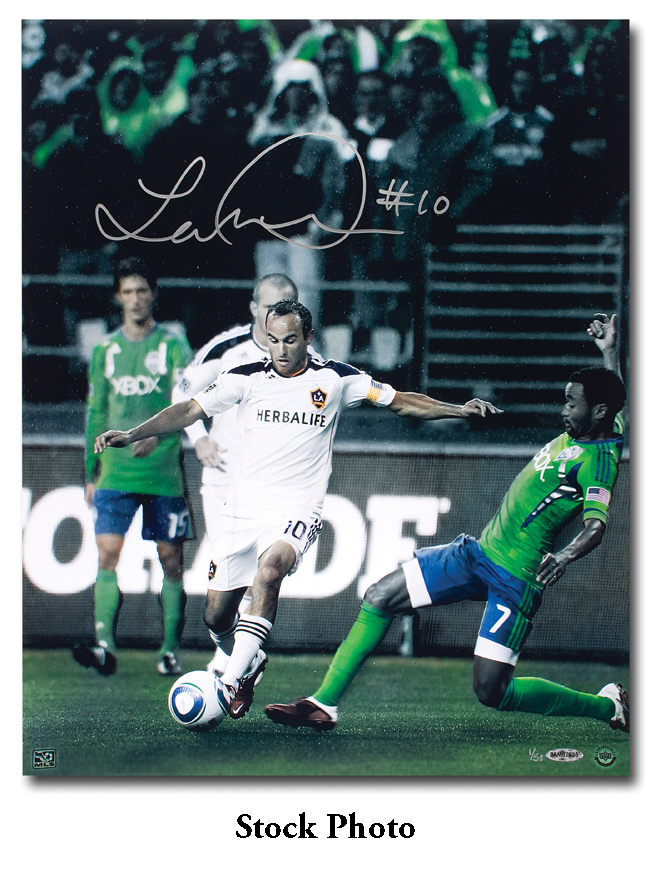 Description:Landon Donovan signed limited edition 16"x20" "Colors of the Game" photograph, UDA (NM/MT). Upper Deck Authenticated showcases the slick ball handler going through a pair of defenders on his way to the opposition's net in this 16"x20" action photo, aptly titled "Colors of the Game". This limited edition (out of 50) print, has been signed by Donovan in silver marker. His signature is guaranteed authentic by virtue of Upper Deck Authenticated's patented five-step process. Comes with COA from UDA (serial #ed hologram sticker is affixed). Please note that the item will be shipped directly from Upper Deck, not from our location here at Hunt Auctions, and the photo is a stock image: NM/MT