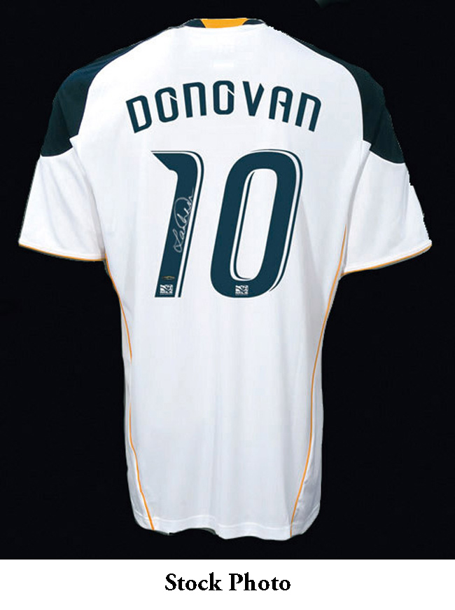Description:Landon Donovan signed LA Galaxy jersey, UDA (NM/MT). Donovan signed the jersey in silver marker. His signature is guaranteed authentic by virtue of Upper Deck Authenticated's patented five-step process. Comes with COA from UDA (serial #ed hologram sticker is affixed). Please note that the item will be shipped directly from Upper Deck, not from our location here at Hunt Auctions, and the photo is a stock image: NM/MT